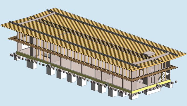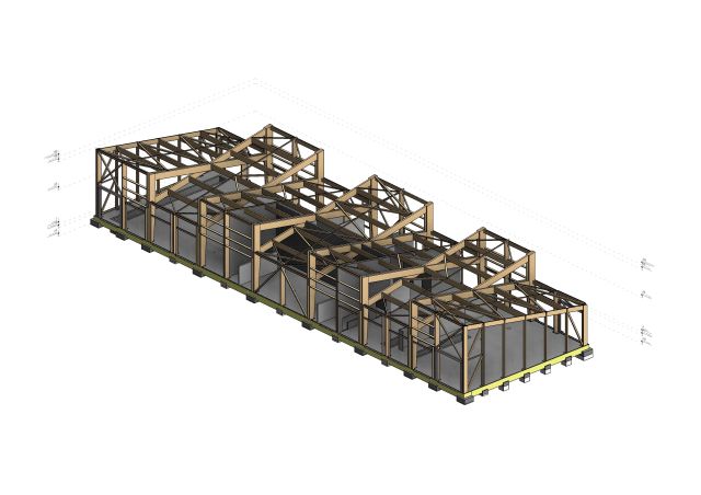 Désamiantage et démolitions partielles du bâtiment DMSIR existant. Structures mixtes Béton-acier-bois. Fondations superficielles.