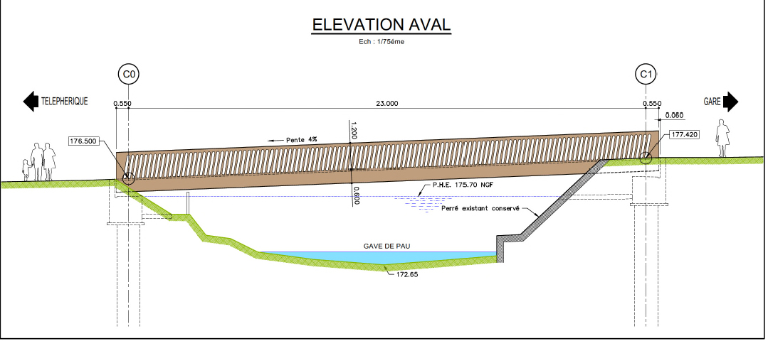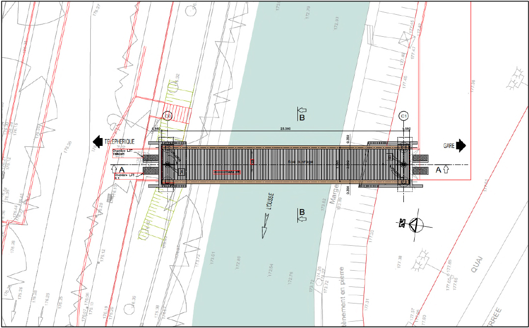 - La construction d’une passerelle piétonne métallique à l’ouest du pôle d’échange multimodal,