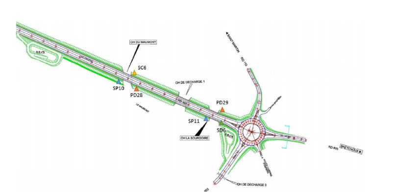 - Ouvrage du Maumont : ouverture de 15.5m de longueur, 14.5m de largeur et 7m de hauteur à l’axe du ruisseau du Maumont,