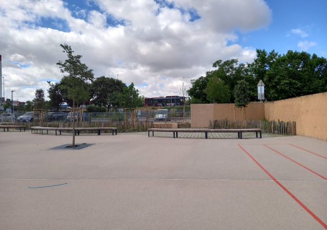 - la reprise des enrobés (désimperméabilitation des cours et mise en œuvre d’enrobés perméables. Remplacement du revêtement noir chaud en été, par un enrobé clair),