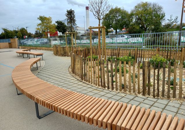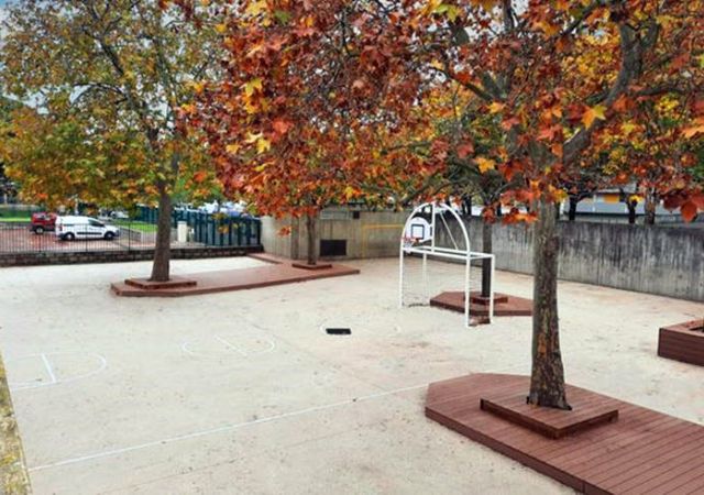 - la reprise des enrobés (désimperméabilitation des cours et mise en œuvre d’enrobés perméables. Remplacement du revêtement noir chaud en été, par un enrobé clair),