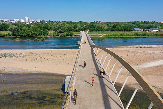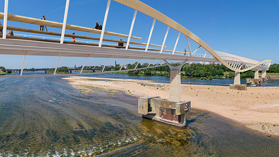 Construction d’une passerelle franchissant la Loire sur les piles de l’ancien barrage du Lac de Loire, d’une longueur de 380 m. L’ensemble de la structure du franchissement principal est décomposé comme suit :