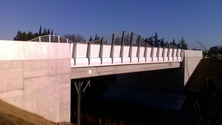 Construction d’un pont type Poutres Précontraintes par ADhérence (PR-AD) du SETRA à une travée isostatique de portée totale égale 24 m permettant la liaison du futur giratoire de raccordement de la RD15 avec le prolongement du boulevard du Languedoc.